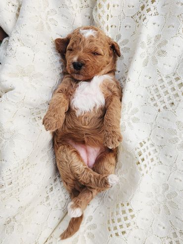 All of our puppies are raised in our home with love and care. They are exposed to different sounds and experiences to help them develop into confident and well-socialized puppies. We provide all necessary vaccinations, de-worming, & microchips before sending them to their new homes.