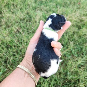 All of our puppies are raised in our home with love and care. They are exposed to different sounds and experiences to help them develop into confident and well-socialized puppies. We provide all necessary vaccinations, de-worming, & microchips before sending them to their new homes.